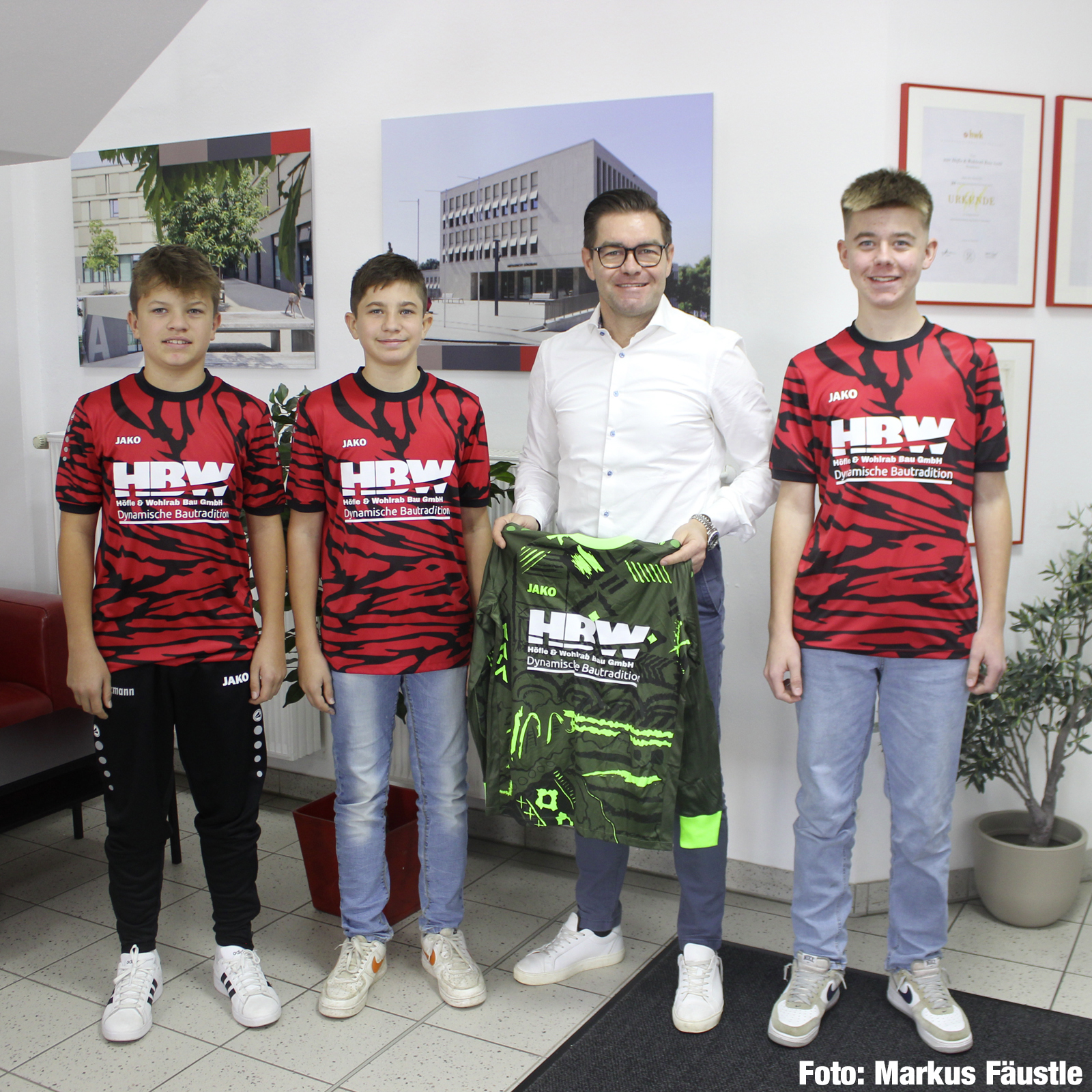 Auf dem Bild sind folgende Personen ersichtlich, von links Luis Olzmann, Jakob Fäustle, Geschäftsführer Christian Wohlrab, 2. Spielführer der C-Jugend Maximilian Fäustle