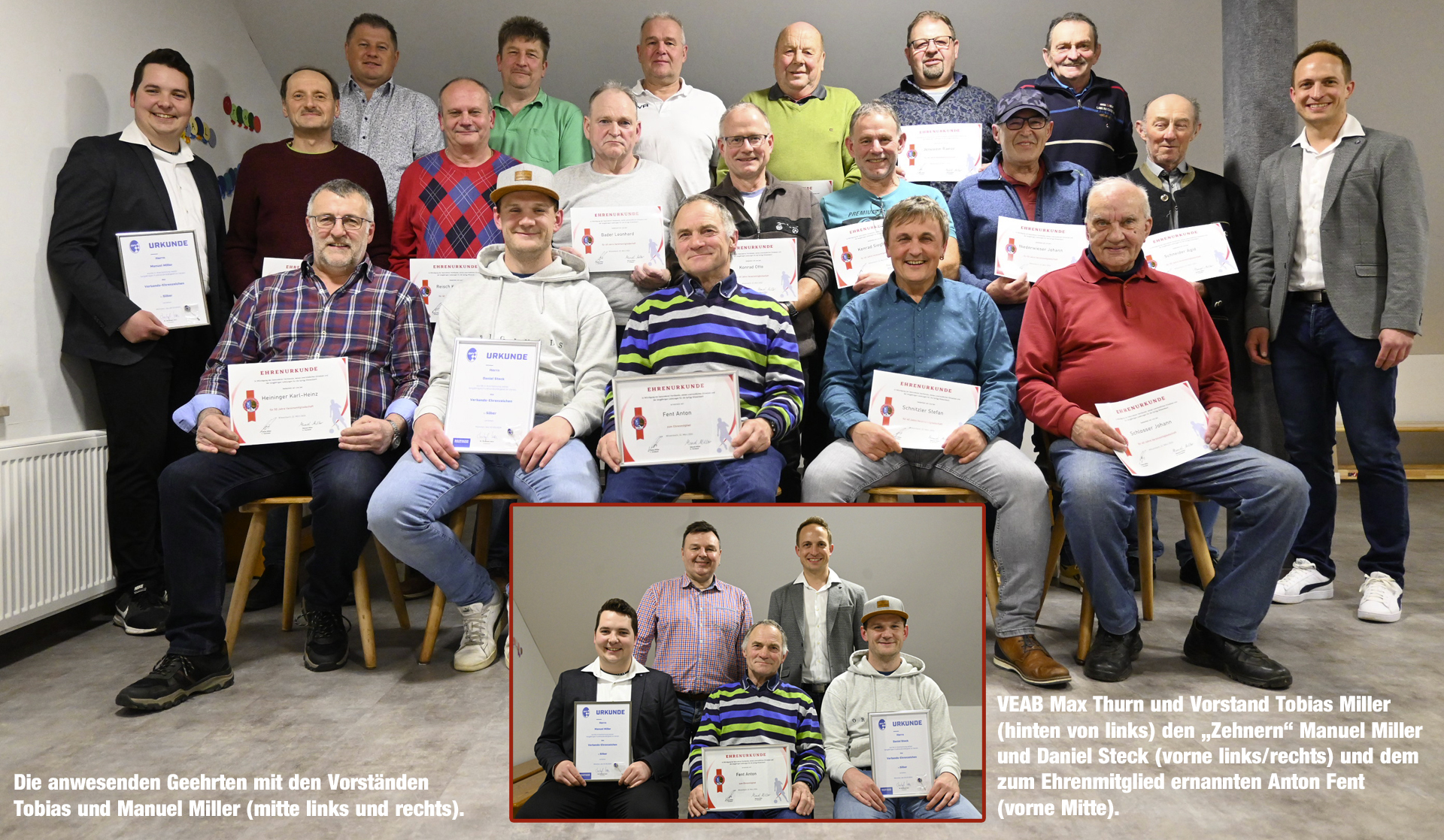 - 50 Jahre: Johann Bisle, Robert Fäustle sen., Karl-Heinz Heininger, Roland Katzer, Josef Müller, Johann Niederwieser, Ägid Schneider, Mathias Thurn