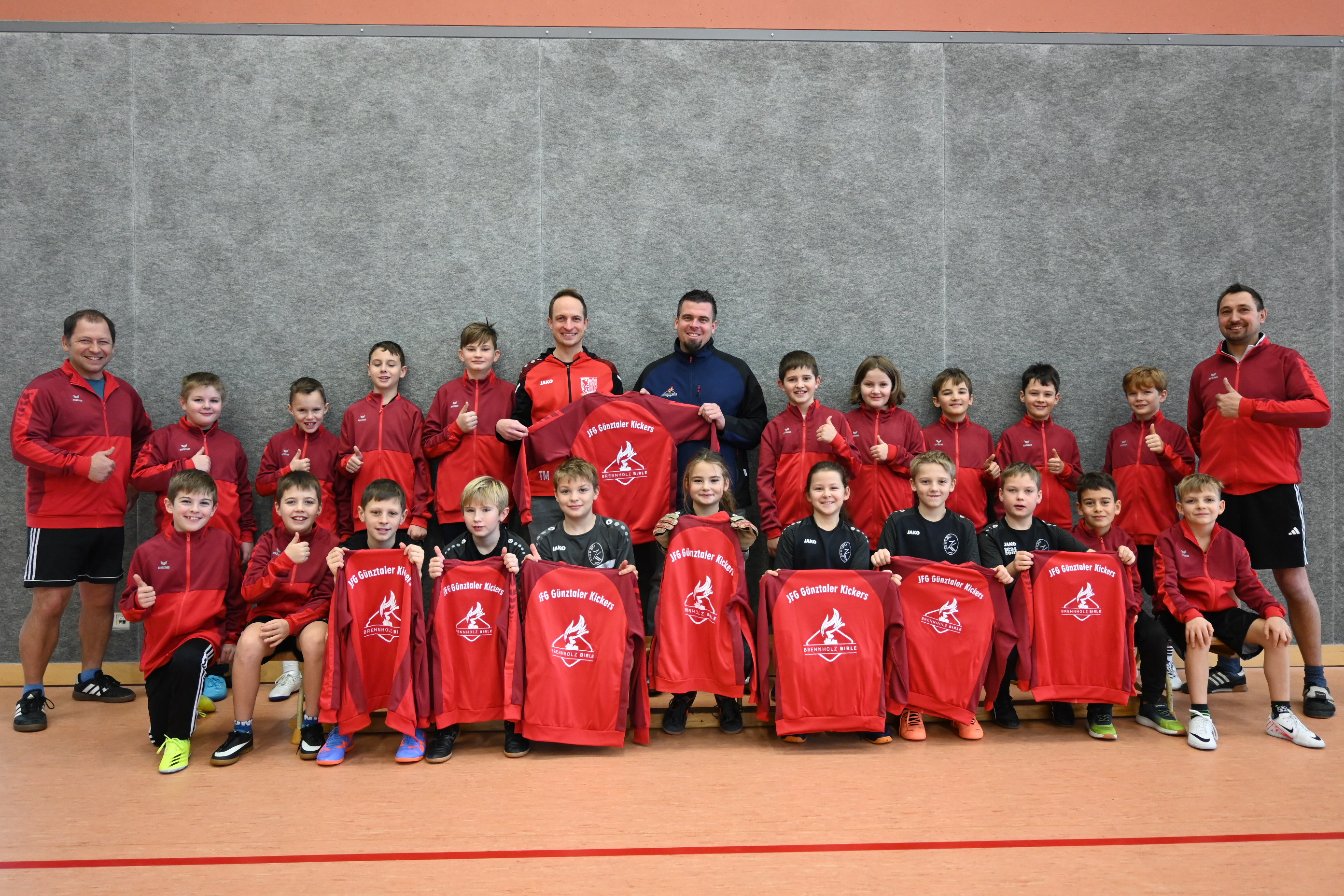 Strahlende Gesichter gabs bei den E-Junioren der (SG) SpVgg Wiesenbach, dürfen sie sich über einen Satz neuer Trainingsanzüge freuen – ermöglicht hat dieses „Nikolausgeschenk“ die großzügige Unterstützung von Brennholz Birle. Die Oberteile des neuen Outfits tragen den Schriftzug "JFG Günztaler Kickers" um den engen Schulterschluß der Stammvereine in der Jugendarbeit zu zeigen.