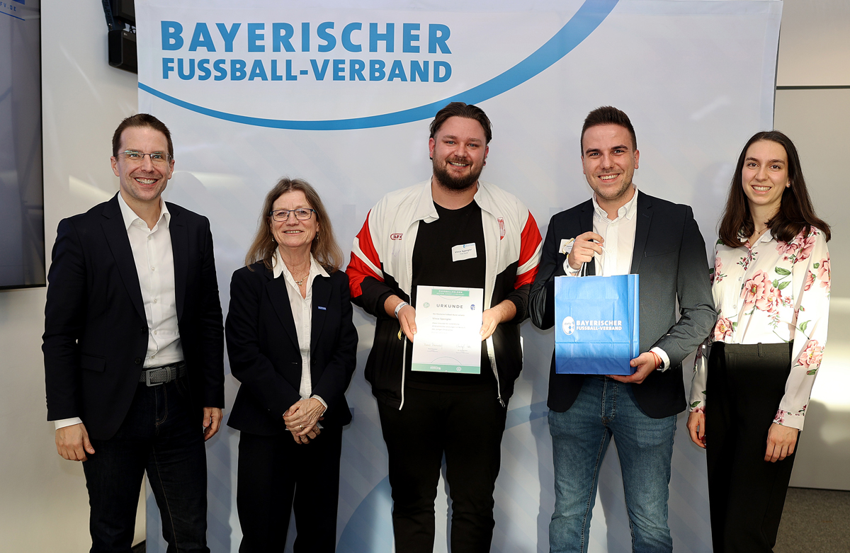 Vince Spengler wurde am Samstag, 28.02.26, in Regensburg vom Bayerischen Fußballverband bei der Aktion „Fußballhelden – Aktion Junges Ehrenamt" für herausragende Leistung junger Ehrenamtlicher unter 30 Jahren ausgezeichnet. Wir gratulieren und bedanken uns bei Vince für sein außergewöhnliches Engagement für unseren Verein. |