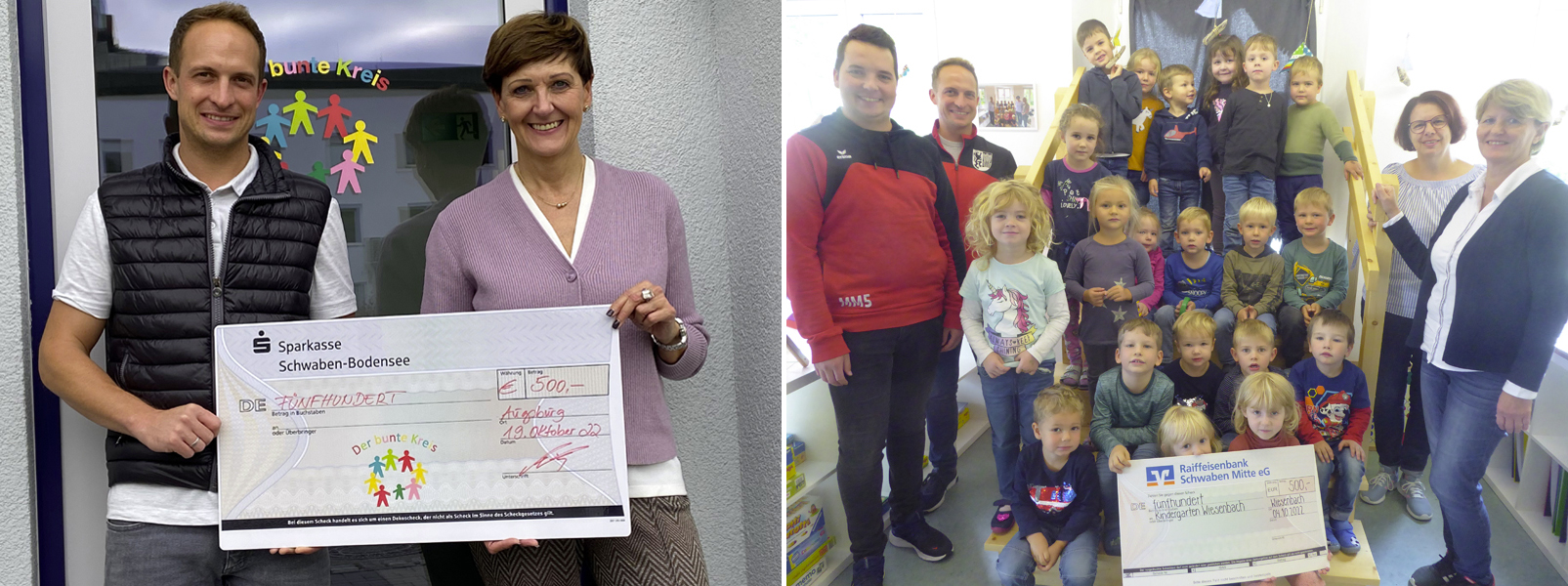 Die SpVgg Wiesenbach freut sich über ein gelungenes Fest anlässlich des 70-jährigen-Vereinsjubiläums und möchte anderen auch ein kleines bisschen Freude schenken - anstelle des sonst üblichen "Helferfestes" für alle Helferinnen und Helfer treten zwei Spenden in Höhe von jeweils 500 € an "Der bunte Kreis" und den Wiesenbacher Kindergarten.