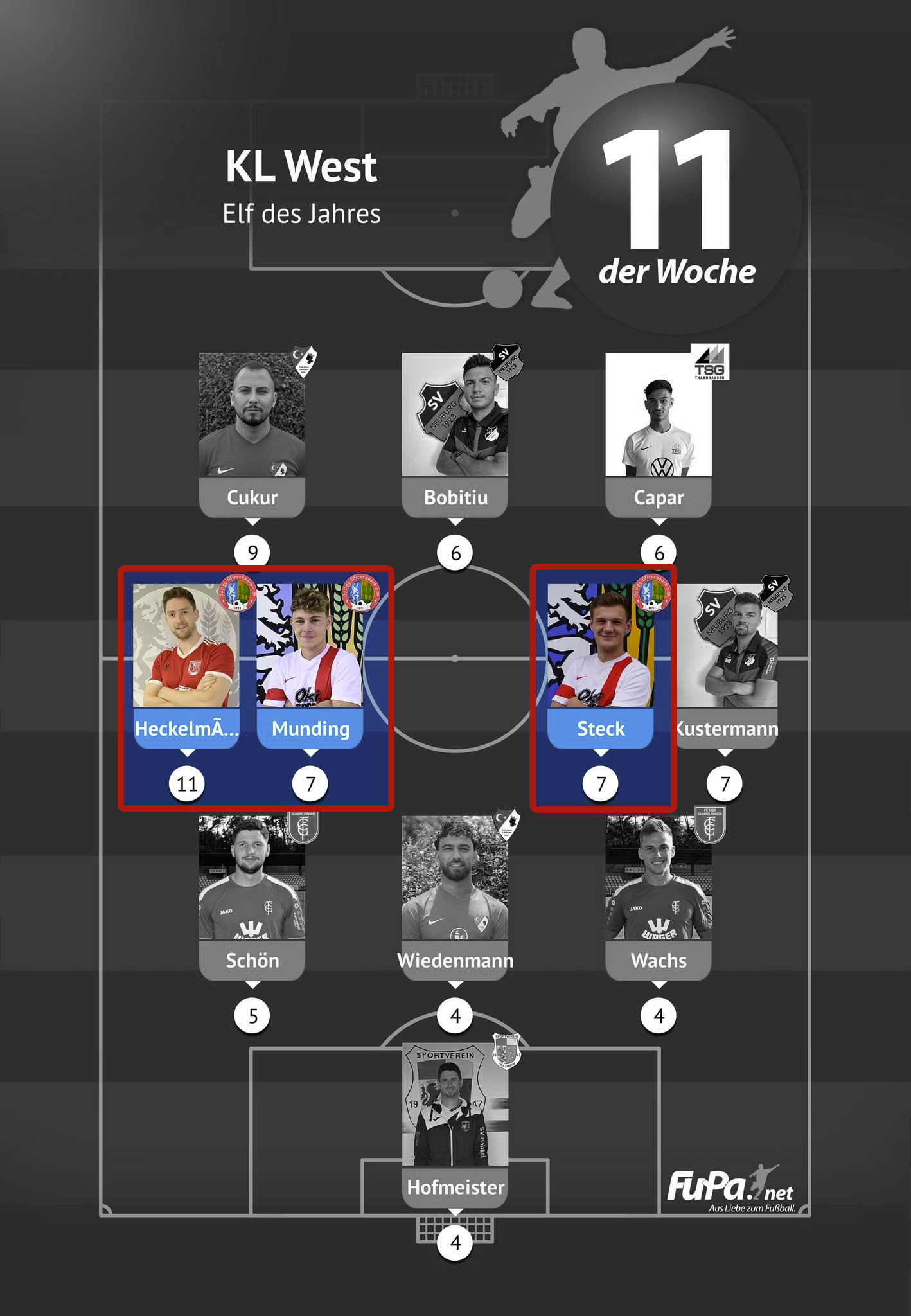 | Pierre Heckelmüller, Leonhard Munding & Daniel Steck qualifizierten sich für die FuPa Elf-des-Jahres der Kreisliga West, Saison 24/25 - wir gratulieren :-) |